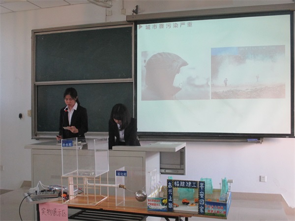通过初赛评委评审,最终20支队伍突破重围进入决赛。本次大赛中所展示的作品不乏位于技术前沿的高新材料。第一组的“吸附材料”,第六组的“合金表面改性的微弧氧化装置”等,都是通过高新技术所创造的新型材料。除了引人深思的科学理论外,也有一些参赛队伍向大家展示了贴近生活的作品。第三组的“智能式太阳能超声波雾化除霾装置”就是受如今雾霾的热点问题启发而产生的创意,其模型生动直观地向观众们演示了具体的运作过程,近距离感受它们给予人们带来的生活好处。到场评委就每组作品的专业化知识发问,参赛者对答如流,而现场评委精辟独到的点评更是将现场气氛推向了一个又一个高潮。回首比赛间,创新与知识的完美结合,口才与语言的精妙碰撞,产品与方案的完美整合,都让在场的观众与评委叹为观止,充分展示出福大学子特有的博思与朝气。