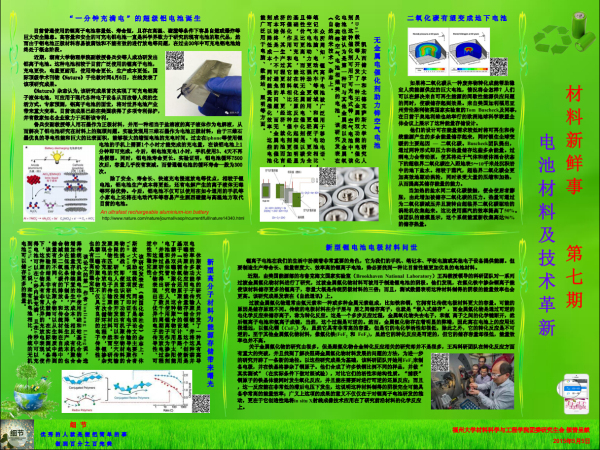 2015年5月,材料新鲜事迎来了它的第七期,每一期的材料新鲜事都会给大家带来科研在各个材料领域取得的最新进展。本期以新型电池为主题,介绍了电池领域新取的进展。