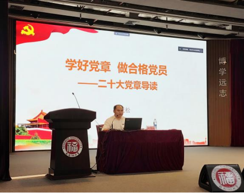 10月29日上午,计算机与大数据学院党委副书记傅茂松老师作“党章”专题讲座,他从政治、思想、组织、行动四个方面阐述了为什么要学好党章,并从党章的内涵、属性及发展阶段讲述了党章的概况。接着,他对党章的五个重要理解点进行详细的解释,并就党章的总纲部分逐段带领大家深入理解学习。最后,傅茂松老师寄语现场发展对象,希望我们在学习工作中做好自己,在当下为宿舍、班级、学校做贡献,将来也能为社会、国家、民族的发展献一份力。
