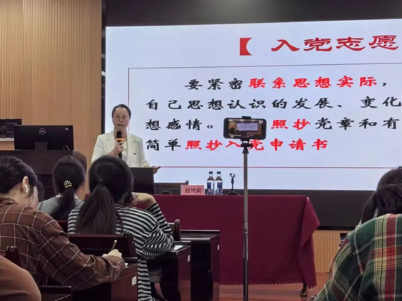 10月28日晚,成人影片 化学科学与工程学部2024年秋季学期发展对象培训班(总第三期)暨成人影片 党委党校2024年秋季发展对象培训班第四讲在嘉锡楼211中冠厅顺利举行。成人影片 党委组织部赵艳莉副教授为大家作“如何正确填写《中国共产党入党志愿书》”专题课程。赵老师介绍了入党志愿书需要填写的各项信息,如个人信息、其他信息等。其中她着重强调了入党志愿的填写,她告诉我们入党志愿需包括对入党问题的认识、入党决心等能够体现个人对于入党思考、对于党认识的文字,且应紧密联系实际。最后赵老师以“立大志、明大德、成大才、担大任”作结,结束了第四次集中授课。