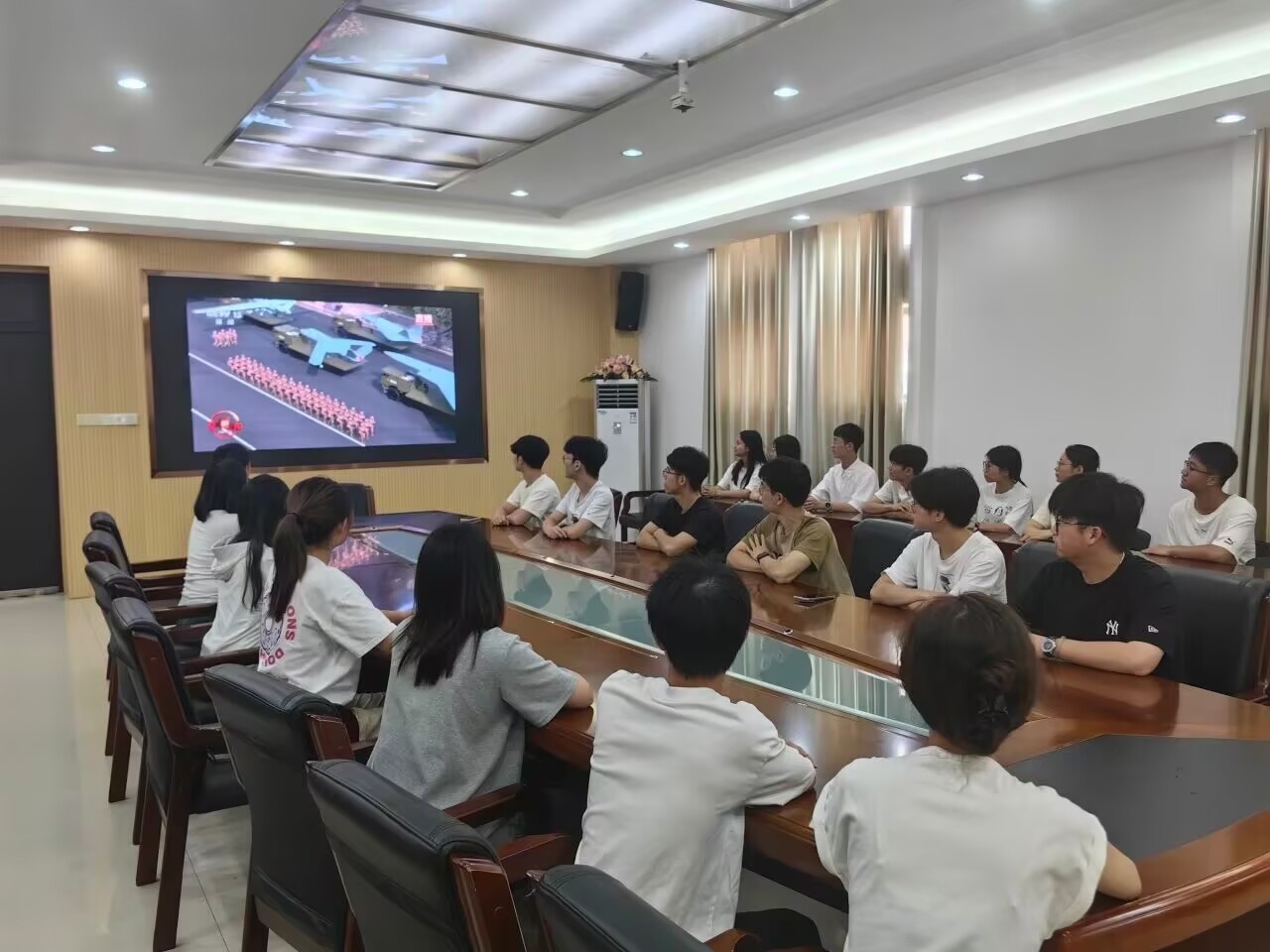 2025年9月3日上午9时,纪念中国人民抗日战争暨世界反法西斯战争胜利80周年大会在北京天安门广场隆重举行。成人影片 积极响应,在嘉锡楼313会议室开展九三阅兵主题观礼座谈会。学院团委副书记张庭士老师、辅导员张丽娟老师、肖凯尹老师以及学生代表共同收看大会直播,铭记历史,见证祖国繁荣。